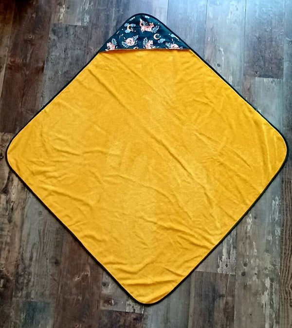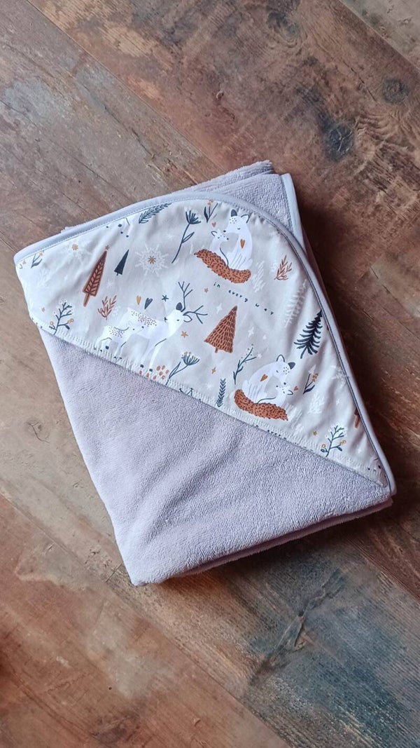 En coton Oeco-tex et éponge bambou. Elle est parfaite pour enveloppé bébé entièrement et est super douce grace a l'eponge bambou.