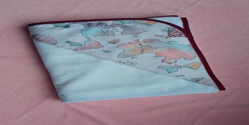 En coton Oeco-tex et éponge bambou. Elle est parfaite pour enveloppé bébé entièrement et est super douce grace a l'eponge bambou.